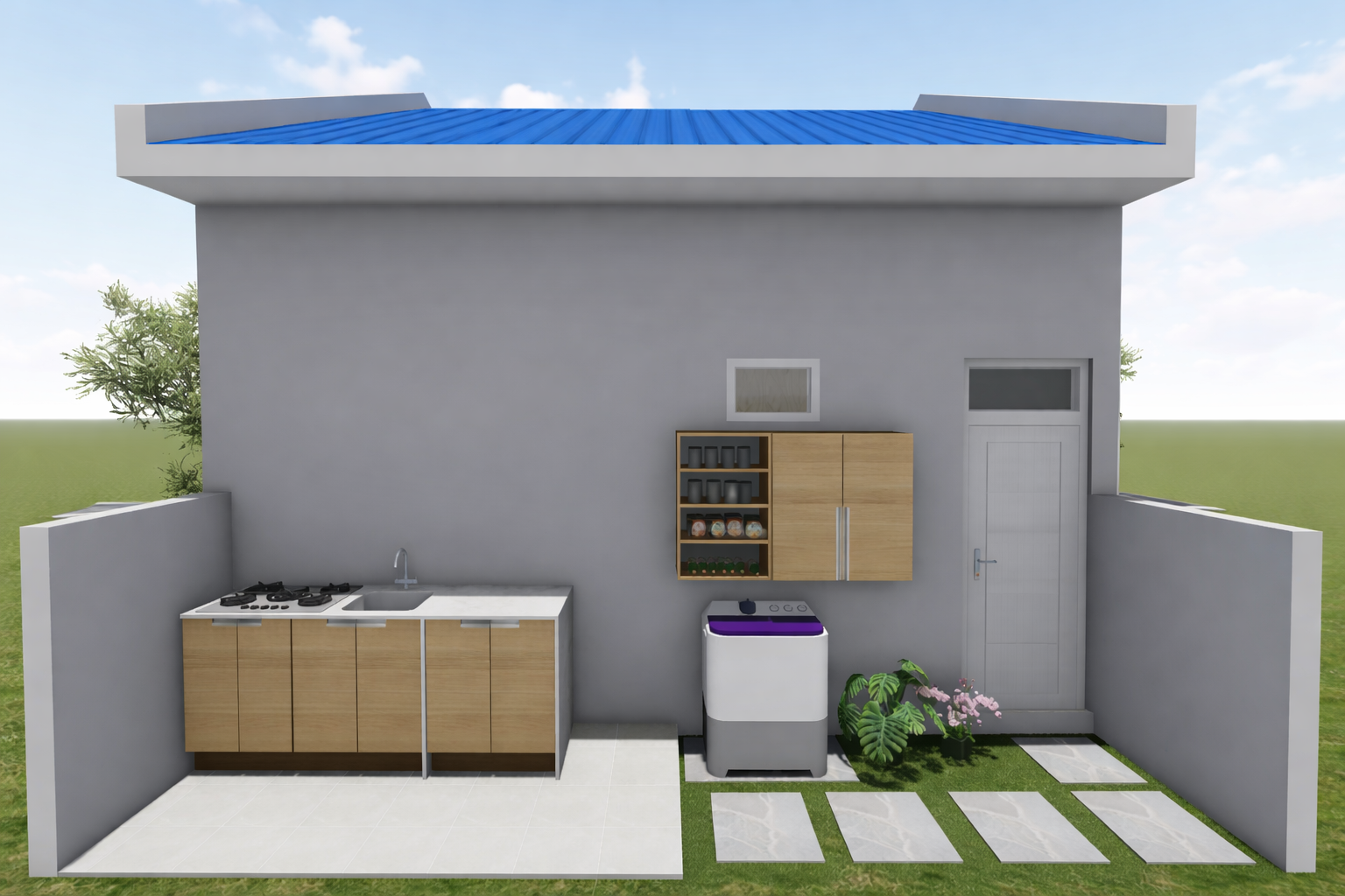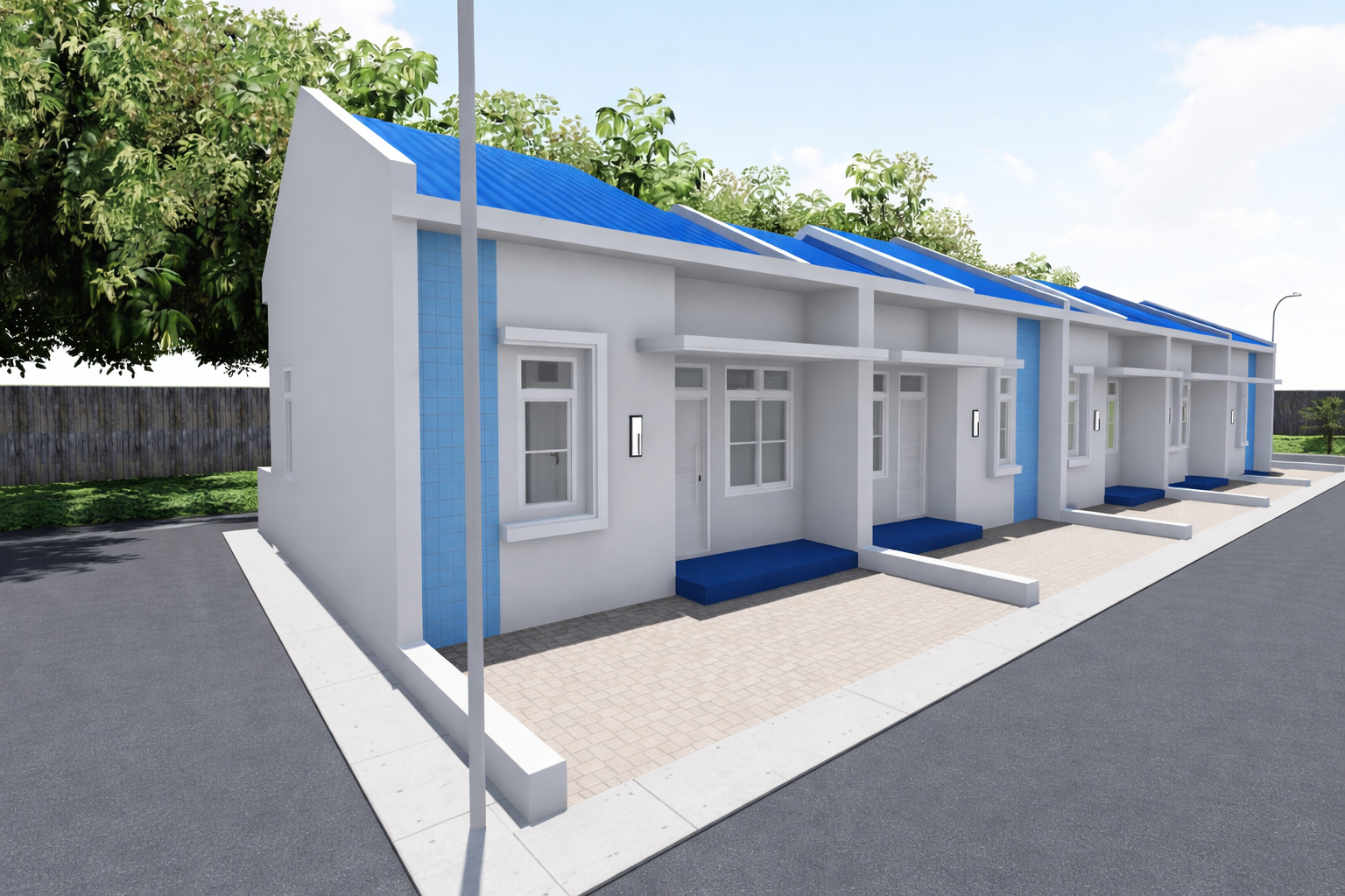 Material berkualitas komersil, konstruksi kuat dan tahan lama — standar lebih tinggi dari rumah subsidi biasa.